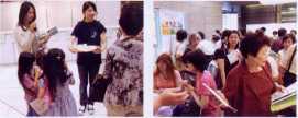 本茶インストラクターによる静岡県各産地茶の試飲と紹介を実施しました。 期間中は暑かったことも加わって、試飲された多くの方々から「美味しい」と好評でした。水出し煎茶を知らない方 が多くいて、「今年の夏は麦茶をやめて水出し煎茶にしようかしら」という声もありました。夏でもリーフ茶で美味し く飲める「静岡茶」をPRできました。 本年度は例年行っている品種茶のPRに加え新茶期から行っている県内20地区の産地茶をPRしました。県内20地 区の産地茶を展示したことによって「静岡茶」にもいろんな産地と種類があることを理解していただきました。また、 静岡茶を購入するときにお茶の特色や入れ方などの説明があると買いやすいという声を多く耳にしました。「静岡 茶」リーフの消費拡大には、これら消費者ニーズを掌握し、専門店へのアプローチが必要であると実感しました。 これら試飲した方々は、本会が用意した「静岡産地茶セット」を購入する方も多く、消費地専門店活性化のひと つのアイテムにもなり得るのではないかと感じました。 |