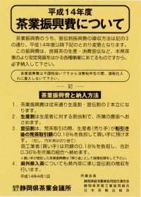 | 平成14年度から宣伝割茶業振興費の賦課基準が変更されます |