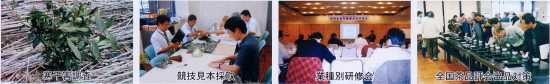 茶の部でそれぞれ1点の農林水産大臣賞を受賞することが出来ました。 各茶期に生産された荒茶を茶商に販売することで、茶商からの要望を聴取するとともに、流通動向を調査(価 格動向の把握)し、翌日の生産販売へ反映することが出来ました。また、叶テ岡茶市場品種茶コーナーにて品 種茶販売を実施し、品種茶のアピールと品種茶販売の実態を確認出来ました。 このほか、協同製茶工場代表者研修会、茶業青年育成対策研修会等において、品種茶互評会を実施しました。 更に、10月には茶業関係者を集め17品種を集め、品種茶互評会を実施し、それぞれの品質を確認することで 生産技術の資料にすることが出来ました。 茶業従事10年末満の後継者を対象とした研修会として、51名の受講者に対し実践に即した研修を実施しました。 |
