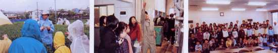 第二回目は5月20日に、「玉露の里まつり」を開催中の岡部町の「玉露の里」で開催しました。 「玉露の里」の茶園で茶摘みをして、「手もみ茶づくり」「おいしい玉露の入れ方」などを体験したほか、 玉露の葉のてんぷらの試食などがありましたので、参加者は大喜びでした。 岡部町からは、玉露園の茶をさし木又は新芽のてんぷらに楽しめるようにと剪定した枝を土産にいただき、 また茶業試験場富士分場より苗木と茶の実を提供して頂き土産として渡しました。 |