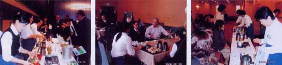 く参加する「県内コンベンションへのインストラクターの派遣」を行います。 現在、県内各地で開催されている各種のコンベンションに日本茶インストラクターおよびアドバイザーを 派遣して、参加者に心のこもった「もてなし」をするとともに、おいしい静岡茶の入れ方をPRして、静岡 茶ファンの拡大に努めています。 また、今後は、消費地で静岡茶を扱っている茶専門店の店員(販売担当者)を対象にして、緑茶に対する 理解向上のための講習会に日本茶インストラクターやアドバイザーを派遣して、静岡茶よもやま詰やおいし い静岡茶の入れ方などをPRして、静岡茶ファンの拡大に努めることとしています。 |