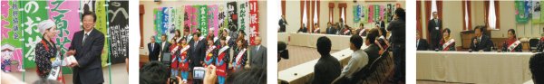 | 平成22年5月20日(木)石川県庁、北国新聞社を訪問した。石川県庁では、茶娘による美味しいお茶の入れ方を実演 しながら、静岡の新茶をPR。 |